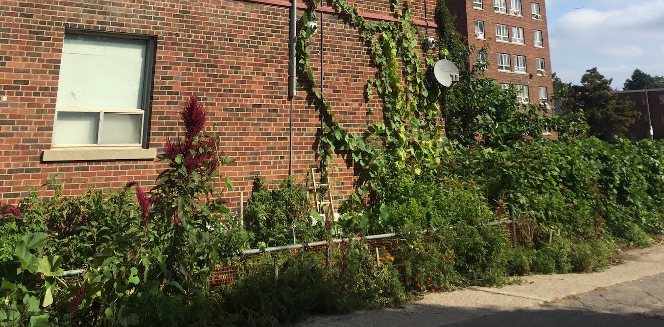 J’ai mené des travaux sur le terrain dans le quartier Regent Park de Toronto qui est en train d’être réaménagé d’une communauté de logements sociaux à une zone à revenus mixtes. Le réaménagement a consisté à construire sur des terres où les résidents cultivent des aliments depuis des décennies. Les habitants ne voulaient pas perdre leur espace de culture, ils ont donc plaidé pour des jardins dans le nouveau quartier. Ils voulaient un accès continu aux légumes cultivés sur place, ainsi que la paix mentale et l’exercice que le jardinage leur procurait. Ils ne voulaient pas perdre leur relation avec les plantes.